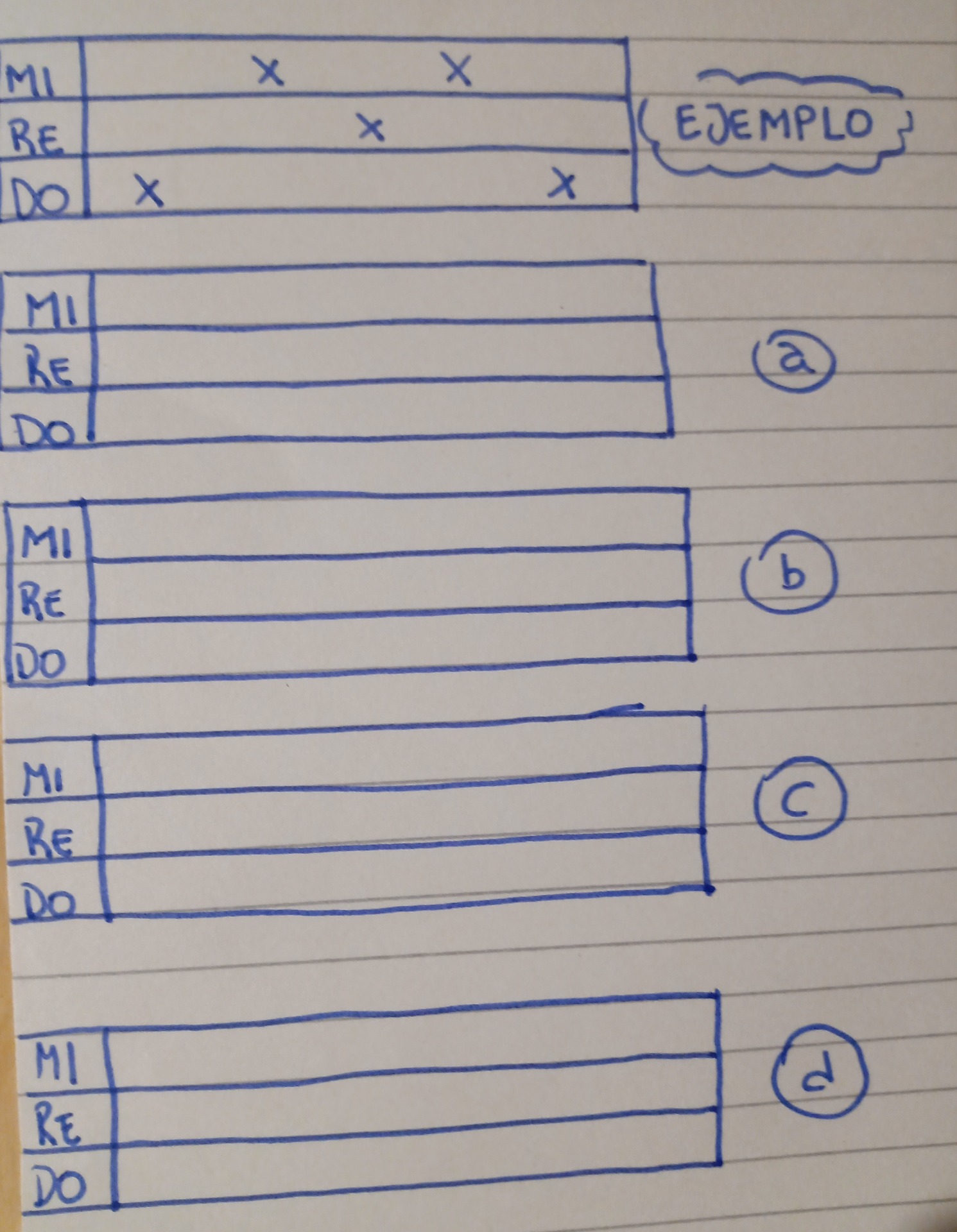 A continuación les presento un ejercicio de percusión corporal sencillo en el cual intentaremos mantener el TEMPO sin apurarnos ni atrasarnos, para eso utilizaremos como guía esta ficha:
