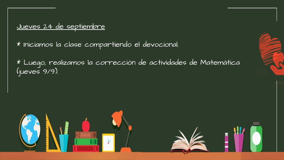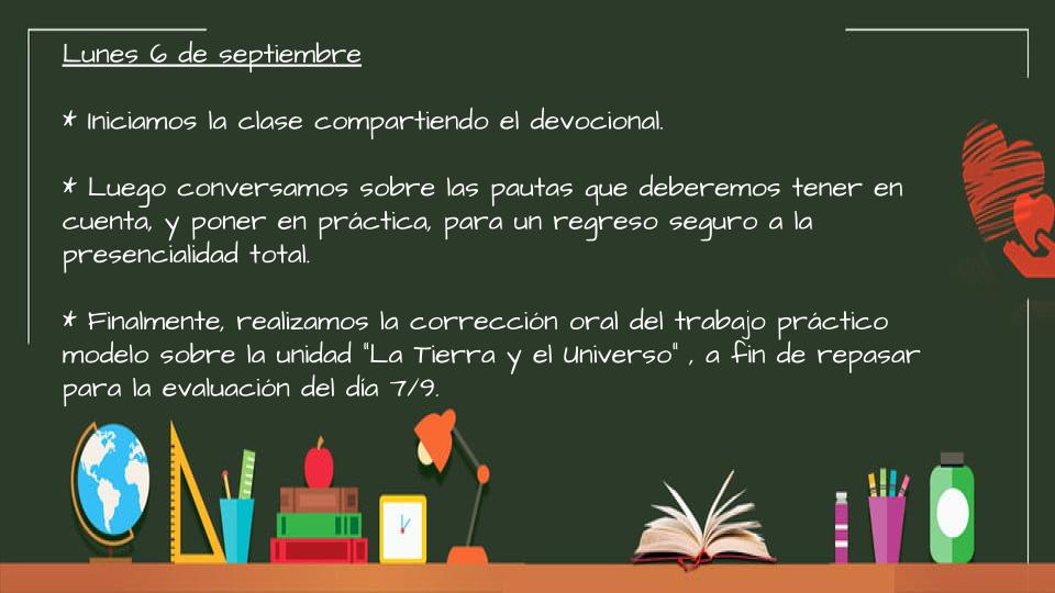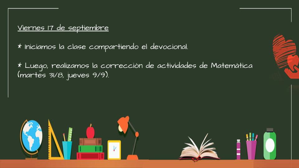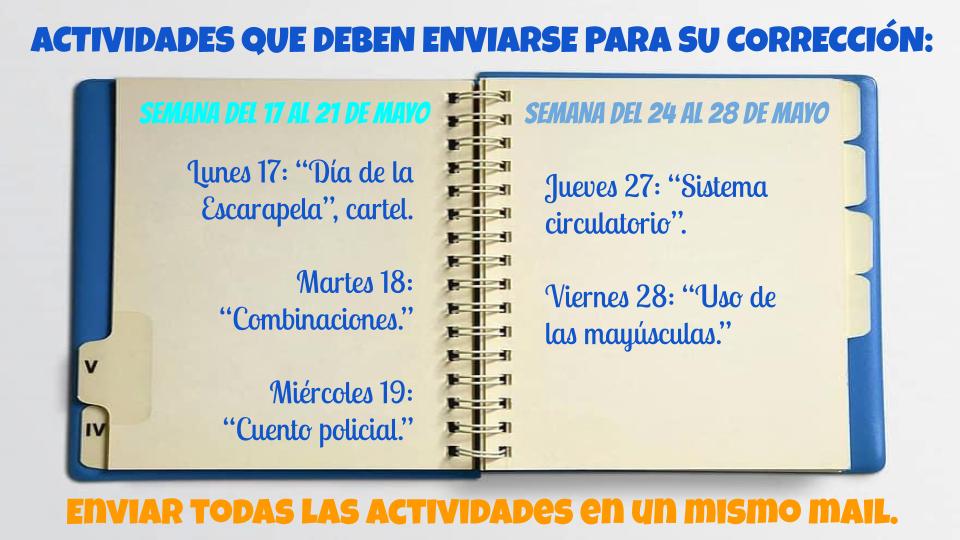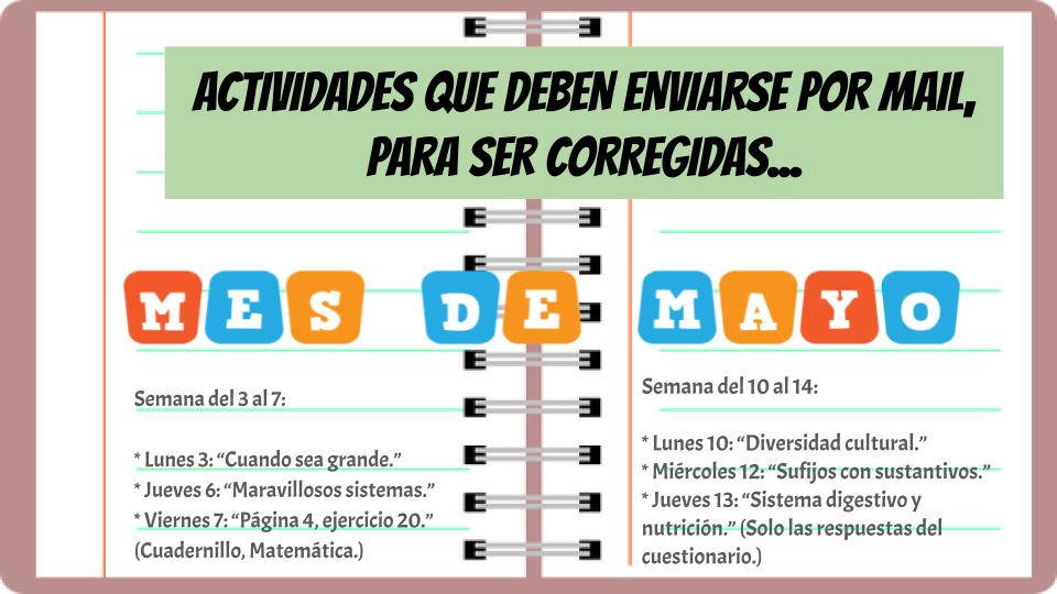 * Jueves 15: Envío el texto correspondiente a la actividad de Cs. Naturales y los ejercicios de Matemática para que terminen de copiarlos.
